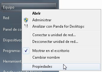 Ahora para modificar el arranque, vamos a las Propiedades de Equipo: