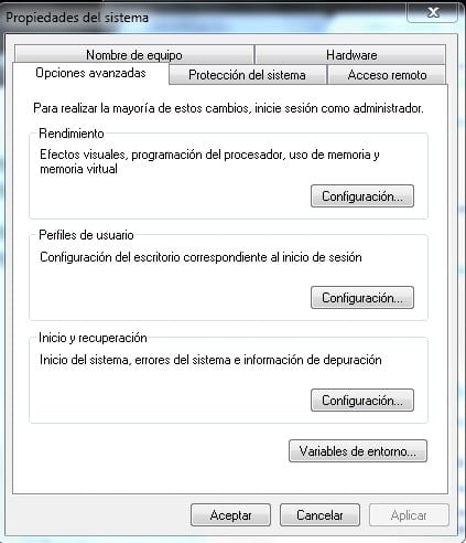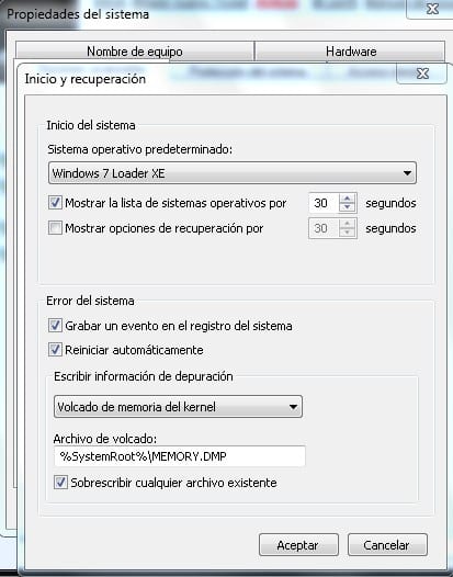 Pestaña Opciones avanzadas –> Inicio y recuperación –> Configuración