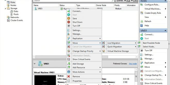 - Mover la máquina virtual de host. Seleccionamos la máquina y vamos a Move -> Live Migration ->Select Node
