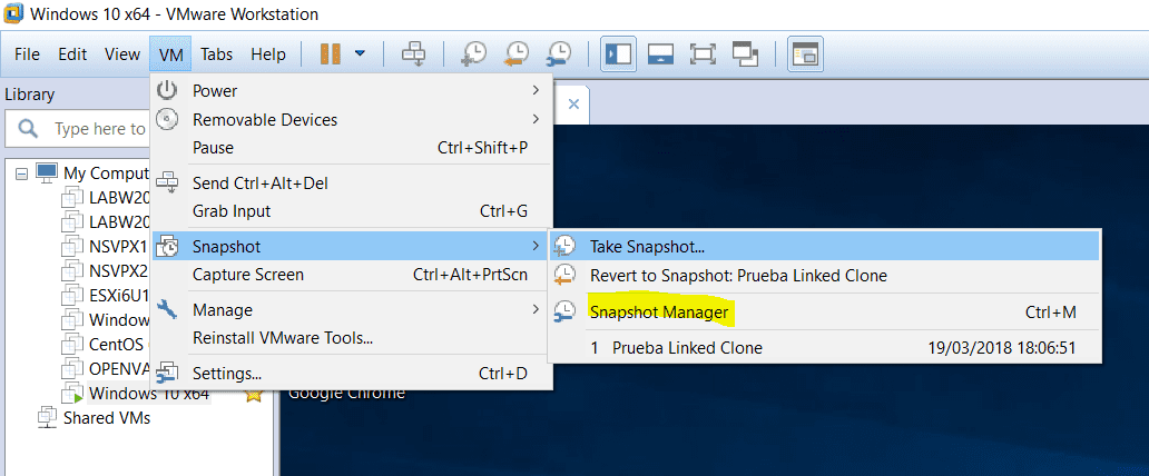 Vamos al menú VM –> Snapshot –> Snapshot Manager