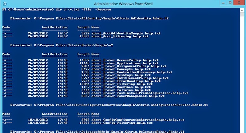 Con este comando obtenemos todos los archivos con extensión txt existentes en la unidad C:\