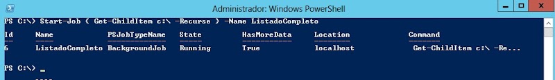 Start-job { Get-ChildItem C:\ -Recurse } -Name ListadoCompleto |