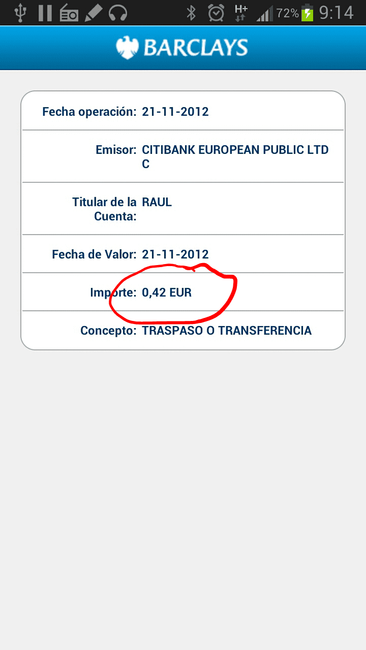 Ese número es 0,42€. Y por qué no 0,01€ como paypal…o no sé…otro número sin sentido. Total que investigando un poco en la red podéis ver la historia que acompaña. ¿Curioso?