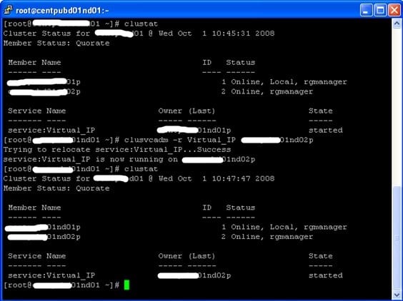 The clusvcadm command allows an administrator to enable, disable, relocate, and restart user services in a cluster. In order to perform cluster service operations, the cluster daemons must be running (and have quorum) on the member system on which the command is invoked.