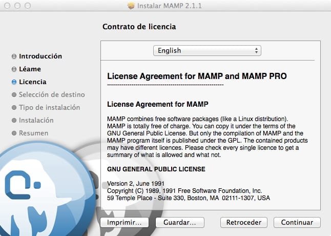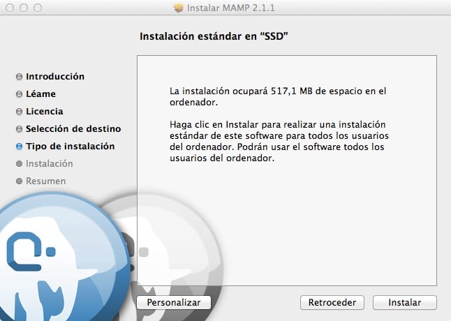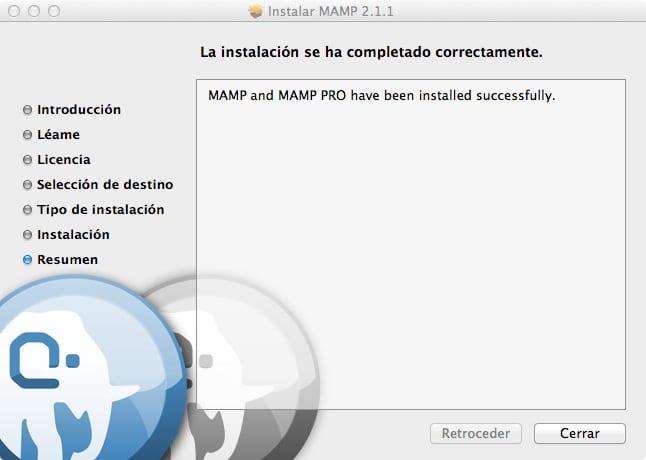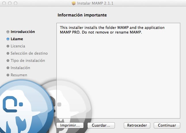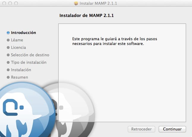 - Descargamos e instalamos MAMP. Descomprimimos el ZIP, y hacemos doble clic el fichero PKG