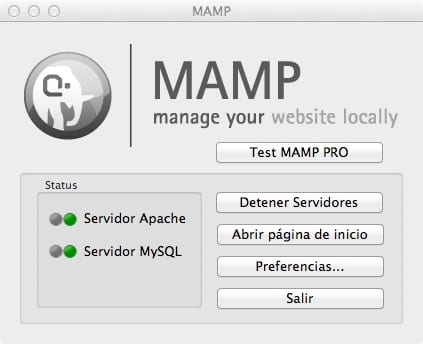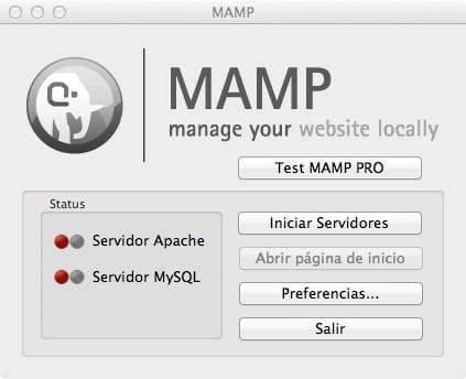 2. Vamos a LaunchPad >> MAMP (el del color GRIS, ya que es la versión gratuita). Pulsamos Arrancar MAMP: