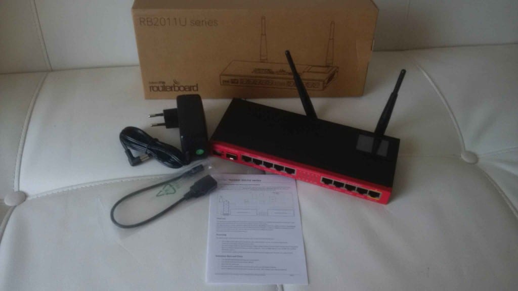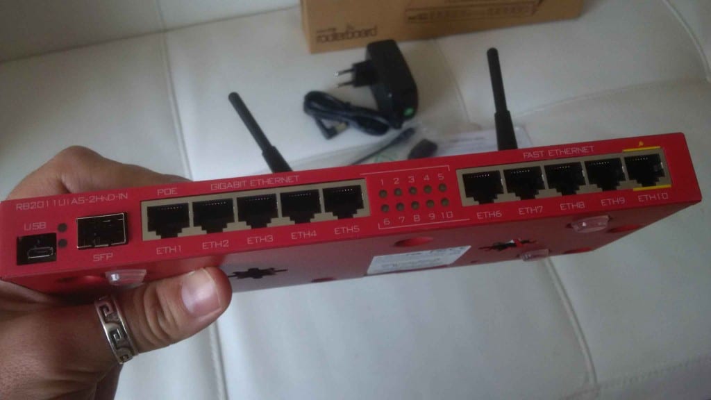 Así que harto de esto, me propuse jubilarlo anticipadamente. Y gracias a la experiencia de algún compañero, me decidí por un Router Mikrotik, el RB2011UiAS-2HnD-IN, que incorpora entre múltiples cosas, 10 puertos ethernet (5Gigabits y 5FastEthernet), wifi N, puerto de fibra y el todopoderoso RouterOS, un sistema operativo especial para este tipo de equipos que abre todo un mundo de posibilidades.