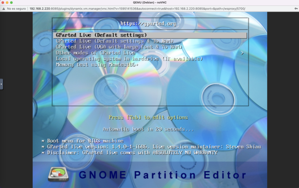 Os explico mi situación, quiero ampliar una máquina virtual Linux Debian, que se me ha quedado sin espacio. Para ello quiero utilizar GParted, arrancar sobre ese sistema y ampliar la partición que me interesa.