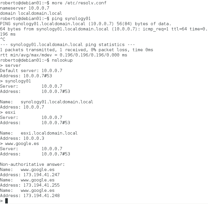 - Ya tenemos configurado el servidor, solo necesitamos acceder a nuestros clientes y apuntar como servidor DNS la IP de nuestro Synology y comprobar que todo funciona correctamente.